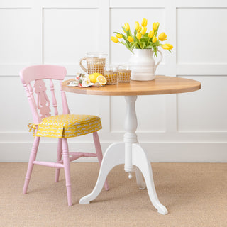 Any of our wooden dining tables can be painted in a different colour. For a custom colour, there's usually an additional charge of £35.50 for Farrow and Ball paints. For other paint brands, we'll charge the cost of purchasing a 750ml tin. However, you're not limited to paint colours—you can also choose a natural wood finish, such as our signature Weathered Oak, for your entire table.