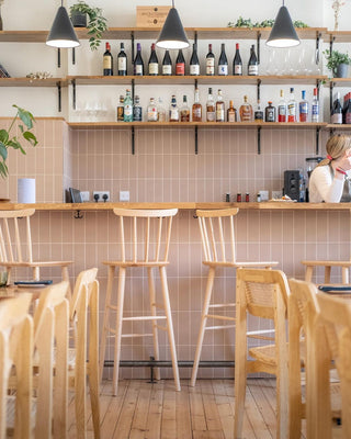 Eline, a restaurant and wine bar in Hoxton, London, was founded by chef Alex Reynolds and wine enthusiast Maria Vivani. This neighbourhood gem was named after Alex’s grandmother who had a passion for cooking. The interior boasts a contemporary, laid-back feel. We had the pleasure of supplying a mix of Farmhouse, Windsor, and Atom restaurant chairs to Eline, all finished in our natural wood colour—the lightest in our range.