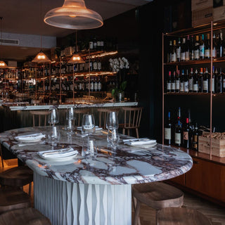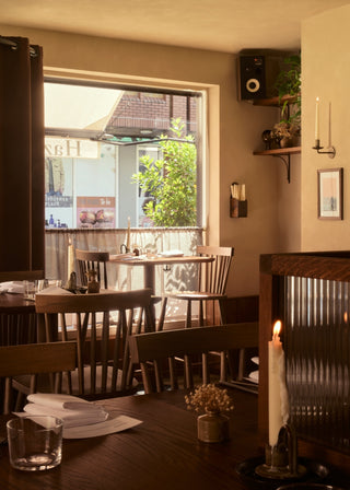 This Michelin Bib Gourmand restaurant is known for its small-plate selection of Mediterranean, Italian, and British cuisine. The wooden restaurant chairs, tables, and bar stools help create a relaxed and comforting atmosphere while guests enjoy the restaurant's delicious offerings.